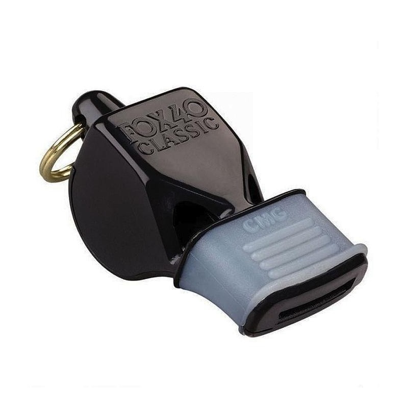 Silbato simple de PVC de color negro. Fabricado en material termoplástico que proporciona un mejor agarre y sujeción en la boca.