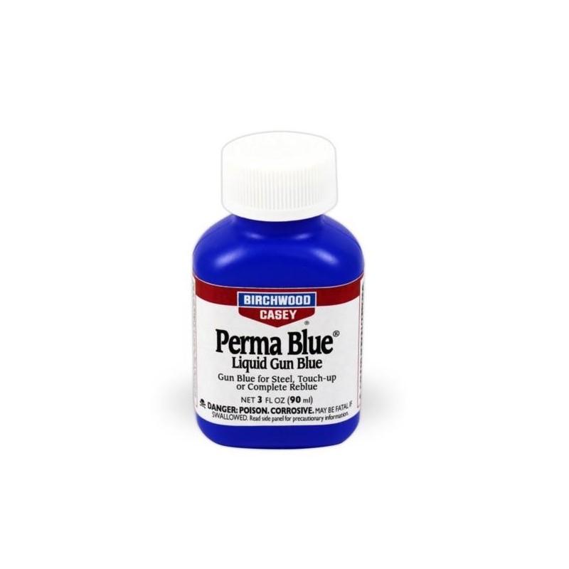 Este producto ofrece la posibilidad de retocar arañazos, marcas de desgaste o incluso repavonar todo el arma. Otorga un acabado liso y uniforme de color negro-azulado al acero siempre que haya sido previamente limpiado y esté libre de oxído. El líquido permablue oscurece el metal más rápidamente que pasta  pero proporciona una cobertura más fina.