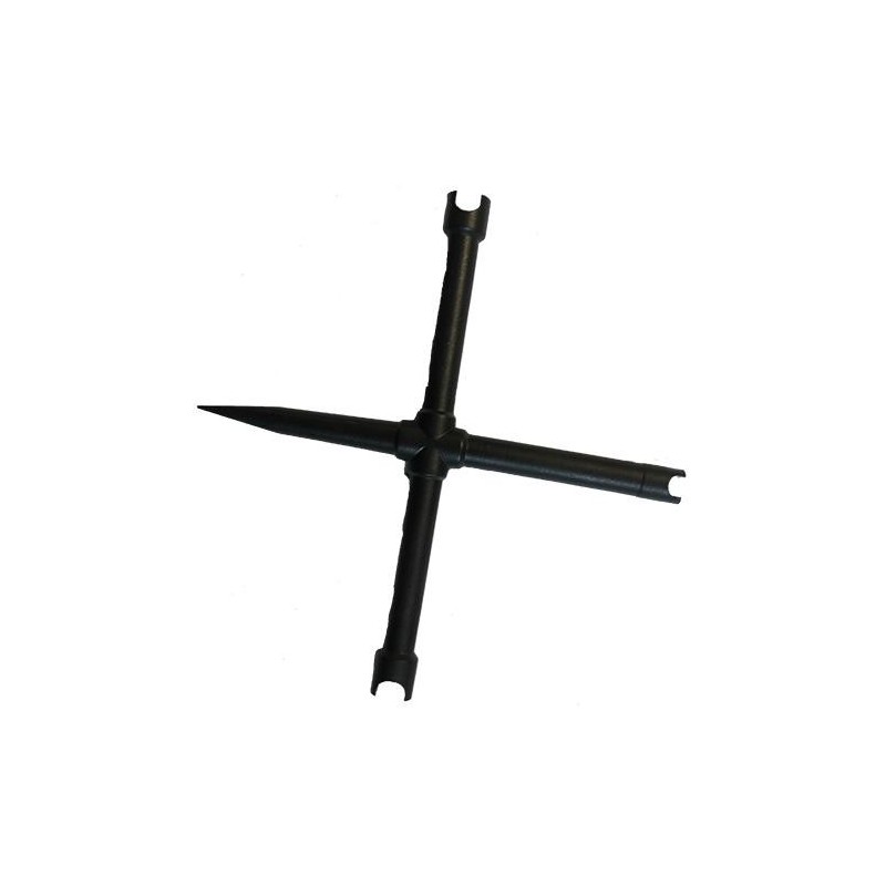 Herramienta universal en forma de cruz para la instalación y retirada de las chimeneas. Boquillas con hendidura de 5, 6 y 7mm  y destornillador. Indispensable para el correcto mantenimiento de un arma de avancarga.