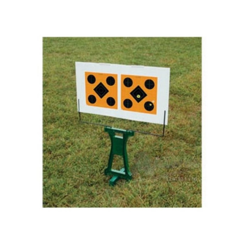 Extructura con respado extra-grande para alojar dos dianas de 16" x16" una al lado de la otra. Se puede plegar para facilitar el transporte. Está fabricado con material resistente a la humedad para todo tipo de clima, los brazos están constridos con una barra de acero para sujetar el respaldo. Además lleva incorporado un estabilizador de tierra extraible para ofrecer oposición al viento, incluso tienen un contenedor para almacenar suministros.