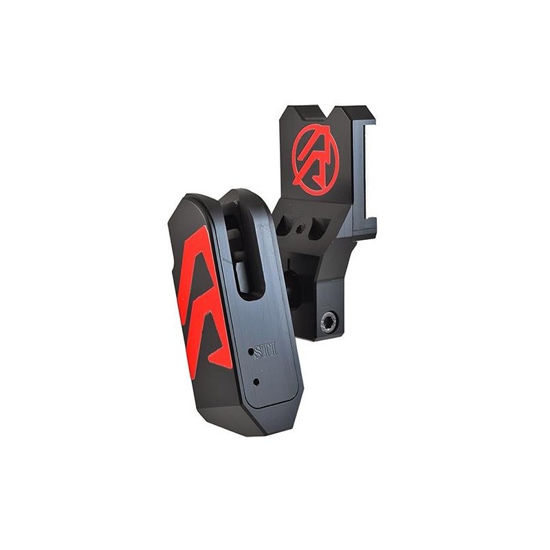 La r&oacutetula del modelo Alpha-X ofrece un amplio movimiento, permitiendo al tirador posicionar la funda en el &aacutengulo deseado. Esta funda lleva incorporada un rodamiento mucho m&aacutes grande que se inserta a la funda por presi&oacuten, evitando que se aplaste. La r&oacutetula se encuentra situada m&aacutes cerca del centro de la funda para aumentar la solidez y &nbsprigidez de la funda.