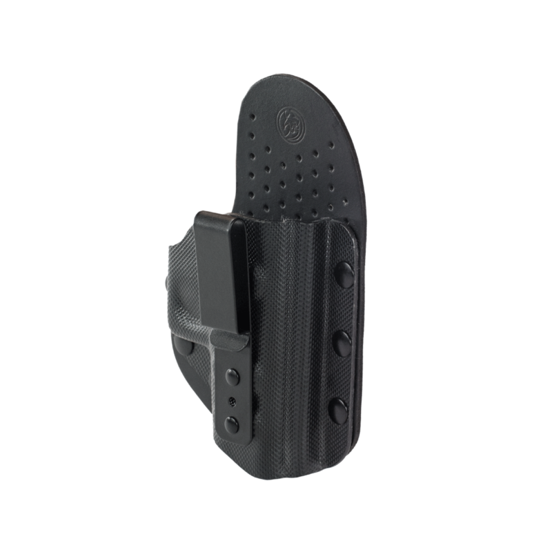 Se incluyen anclajes de cinturón alto apto para cinturones de 3,5-5 cm y paddle. El anclaje tipo paddle permite el uso de la funda sin cinturón.