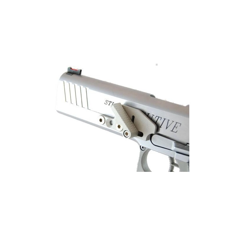 Nuevo apoyador regulable válido para las divisiones Open y Standard de IPSC. Es muy útil para compensar el retroceso del arma en altas cadencias de disparo. Regulable en altura y deriva, tambien se puede variar el angulo de rotación. Fabricado en aluminio endurecido.