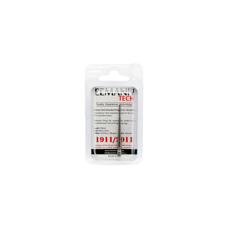El percutor extendido Eemann Tech está diseñado para las Colt 1911, 2011 y sus modelos similares. Este percutor extendido soluciona los problemas de disparos fallidos causados por resortes principales débiles o cebadores duros.